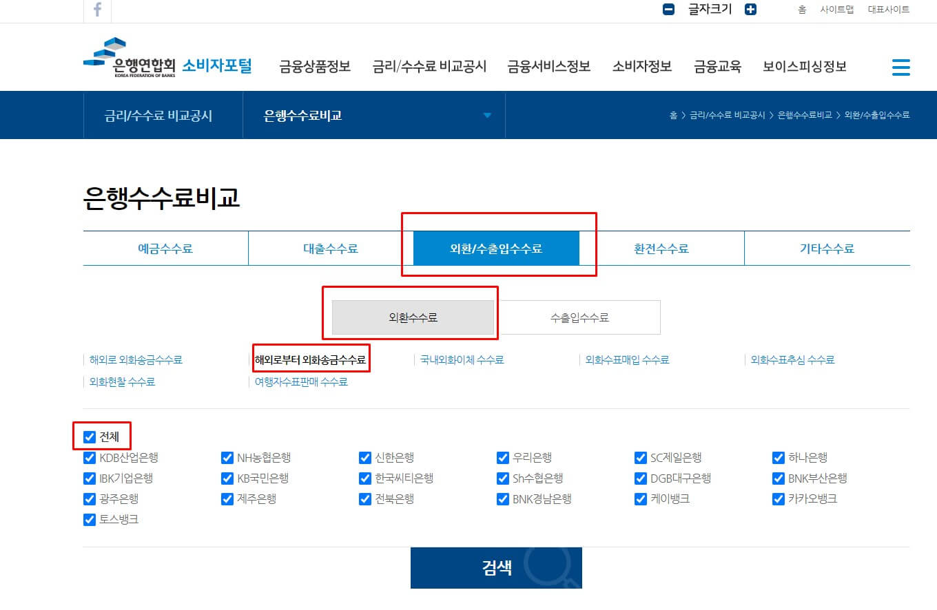 들어가서 내가 궁금한 은행 또는 새로운 은행의 수수료를 정확하게 확인해 보는 게 좋겠죠!