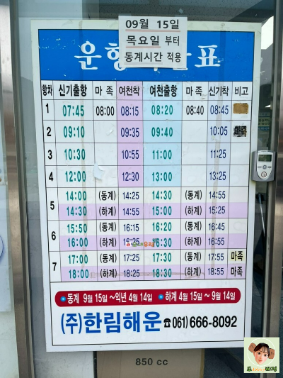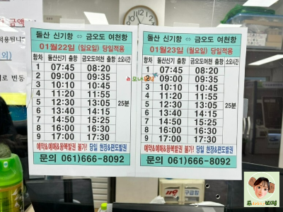 (저희는 기상악화로 큰 배가 뜨지 않았어서, 문의 전화는 안되는 날도 있더라구요)