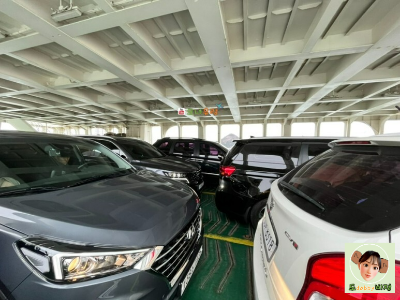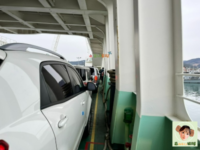 차량 주차하고, 다른 차들도 가득 차면 배가 출항하는데,
