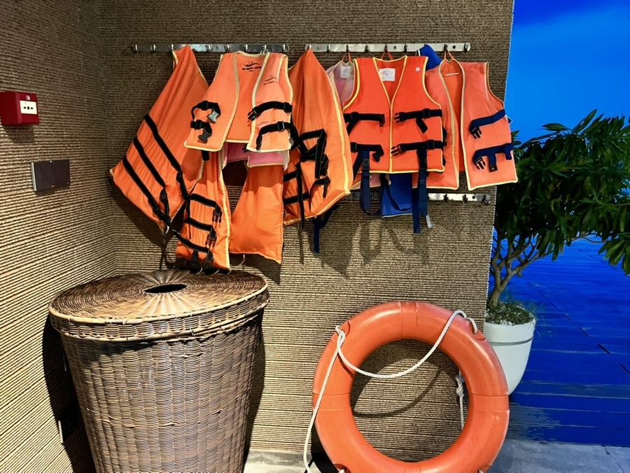옥상 수영장에는 구명조끼와 수건도 같이 있었어요!!