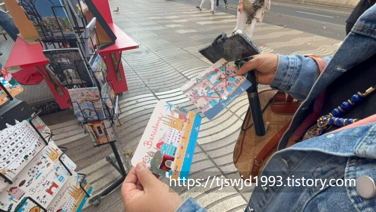 람블라스 거리에서 엽서 한 장의 가격은 1.5 유로