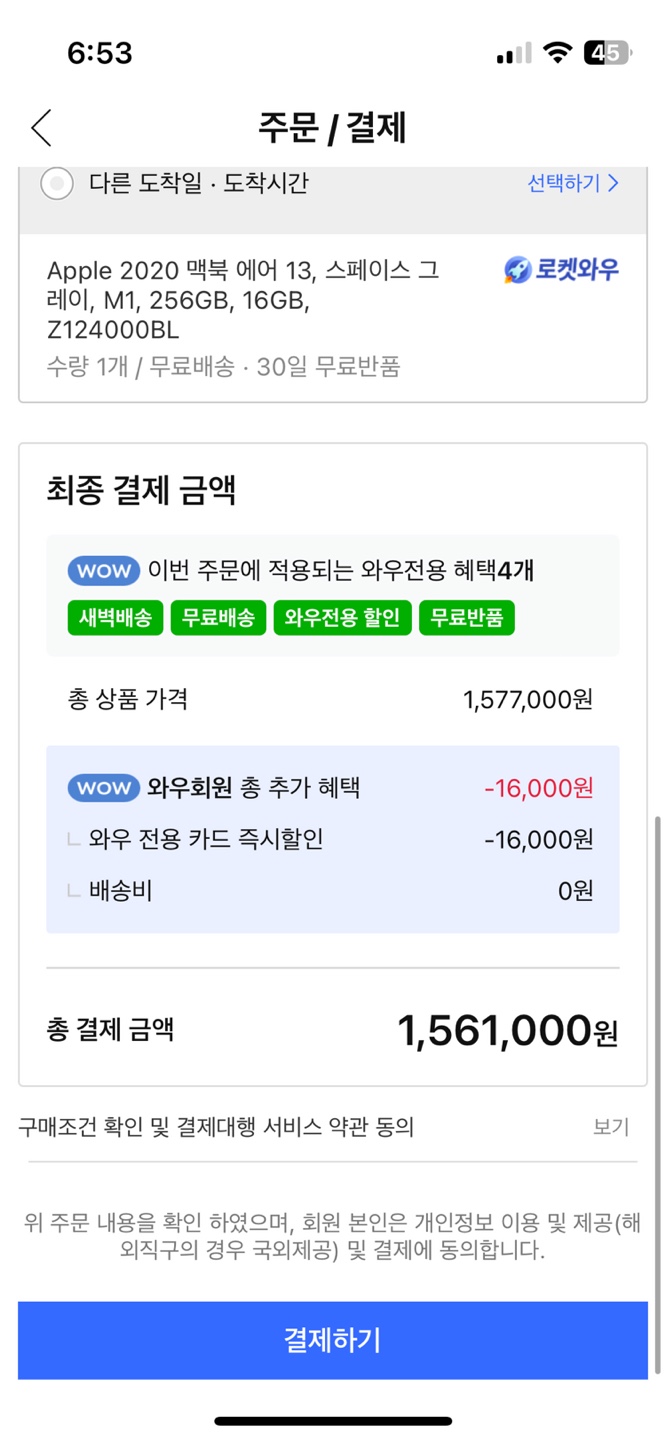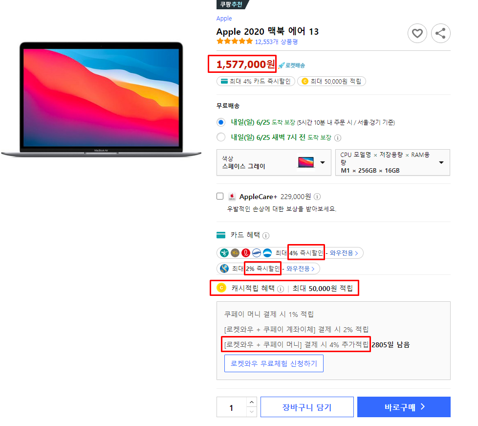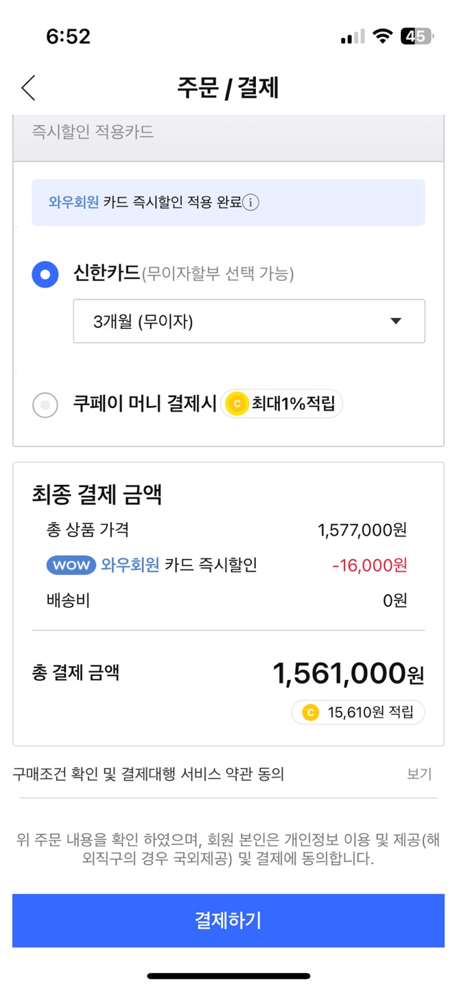 1,577,000원 - 16,000원(카드 할인) = 1,561,000원