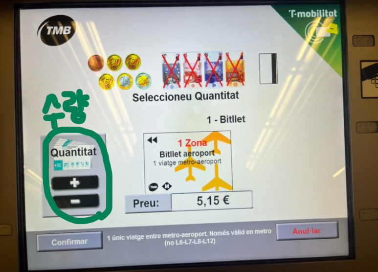바르셀로나 지하철표 구입 기계