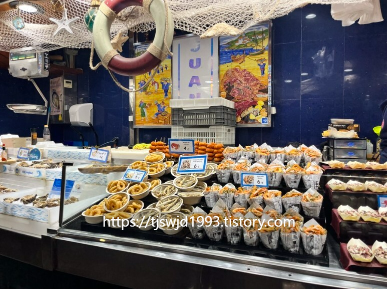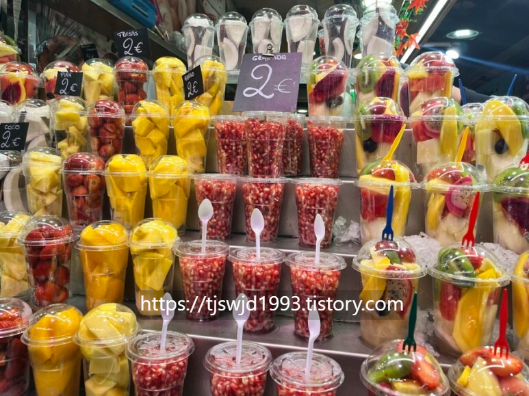이렇게 슬라이스로 파는 시장은 보케리아 시장에서 처음봤어요~