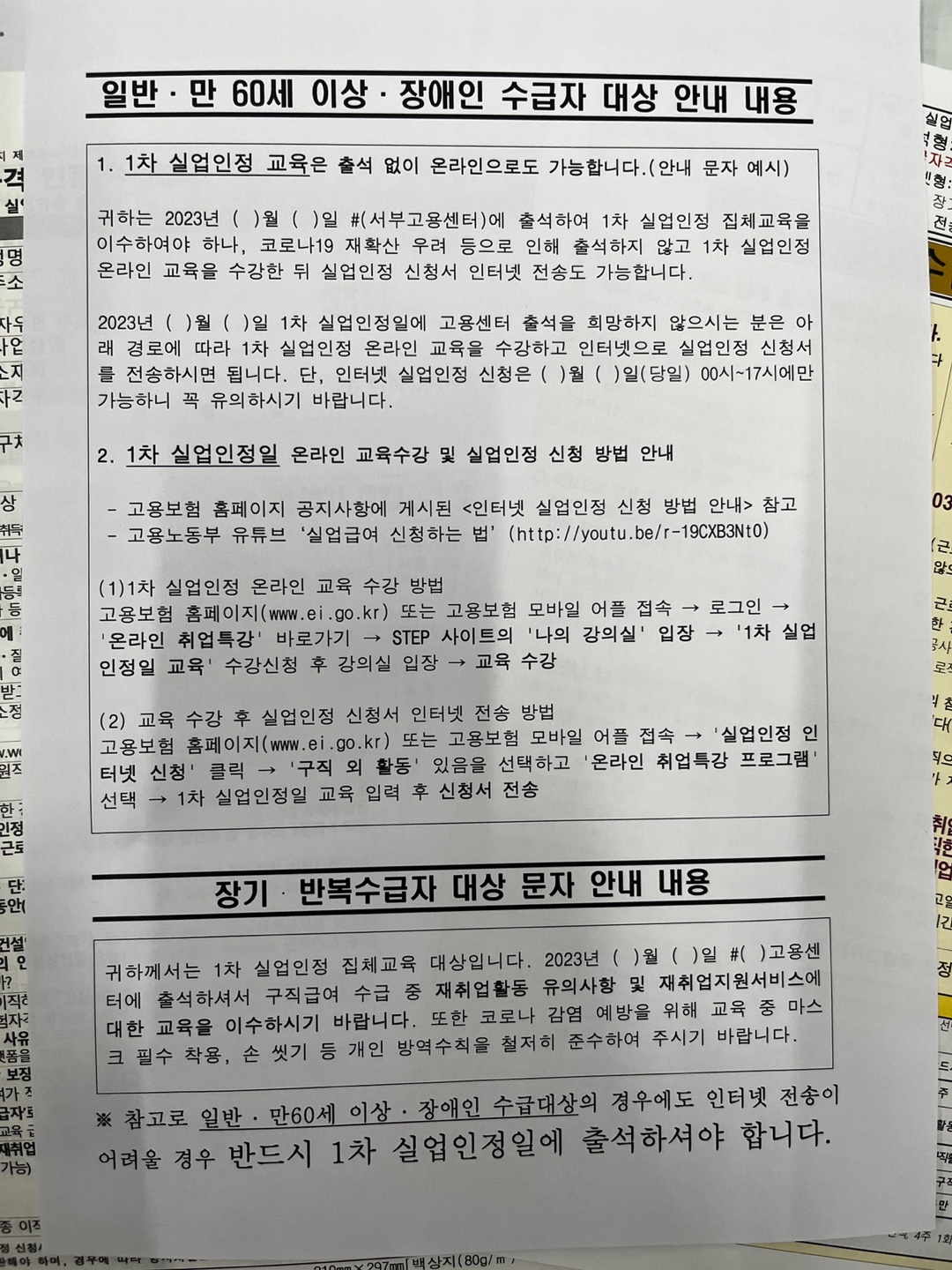 - 실업급여수급자 안내문