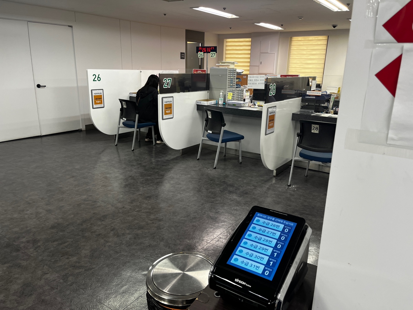 1. 서류 작성한 것을 직원에게 보여줍니다.