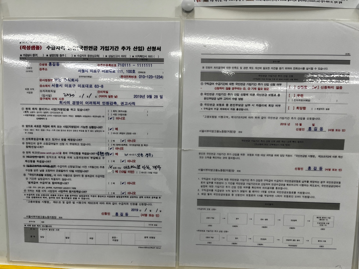 위에 안내된 실업급여 신청서 예시가 많이 도움이 됩니다!!