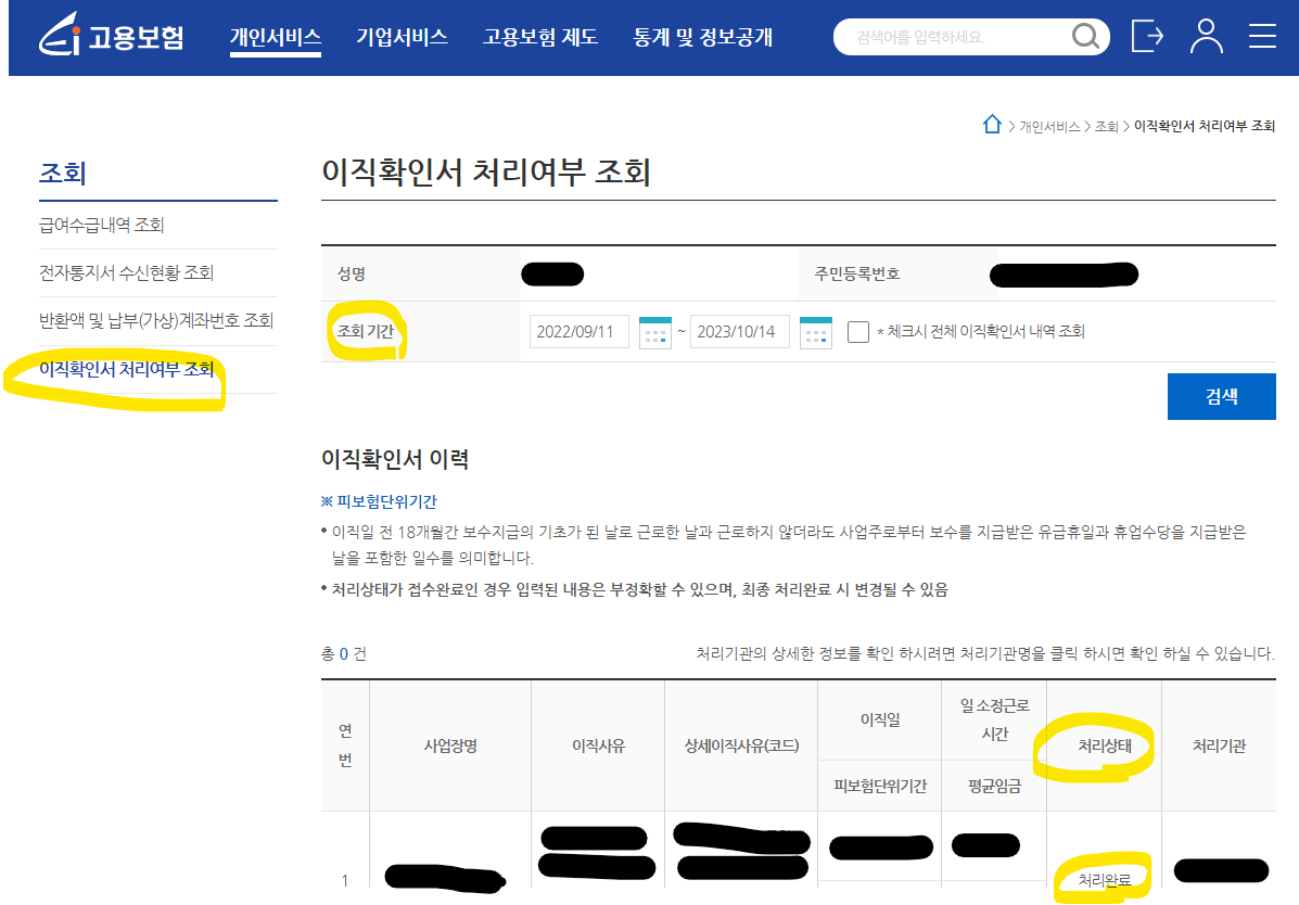 이직확인서 처리여부 조회는 고용보험 사이트에서 가능합니다.