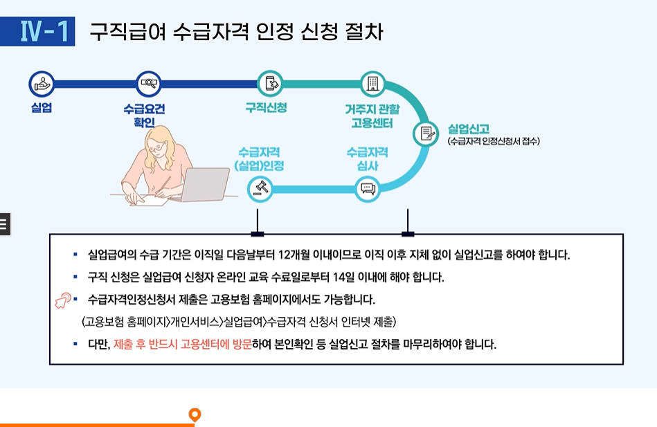 - 참고로 실업급여 온라인 강의는 14일 이내에 고용복지센터 방문 및 실업급여 신청을 해야 합니다. 14일이 지나면 재수강해야 하니... 저처럼 2번 듣지 마시고 ㅜㅜ 빠른 시일 내에 고용복지센터 방문하시기 바랍니다:)