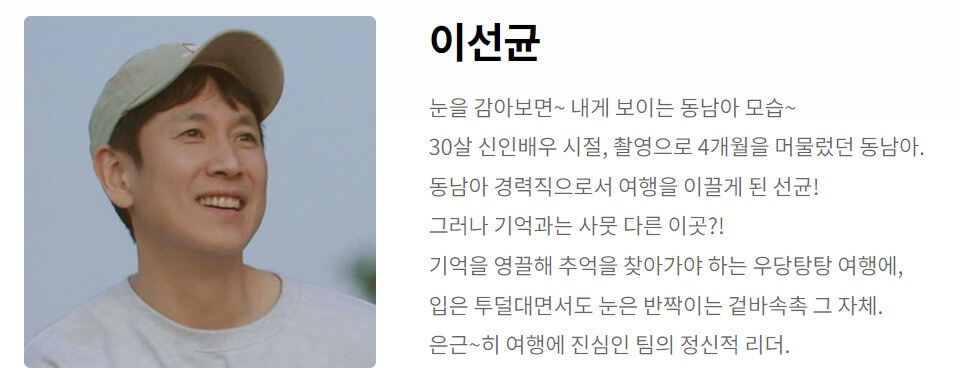 개인주의는 기본, 사사로운 감정은 환영! 각자도생의 결과는 위아래 없는 케미?! 아무도 몰랐던, 새로운 동남아를 파고드는 100% 사심 기반 여행 버라이어티이다.
