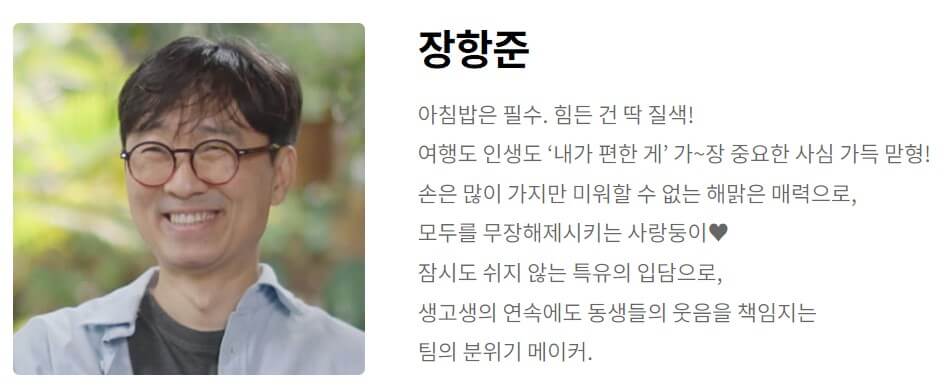 역시 여행을 할 때엔 장항준 같은 성격이 너무 좋을 거 같다는 생각ㅋㅋㅋ 콧수염을 통해 느껴지는 그의 유머와 라이트함이 함께 여행하는 모두에게는 환기를 주는 촉매제가 될 것임을 직감하게 하는 1화였다.