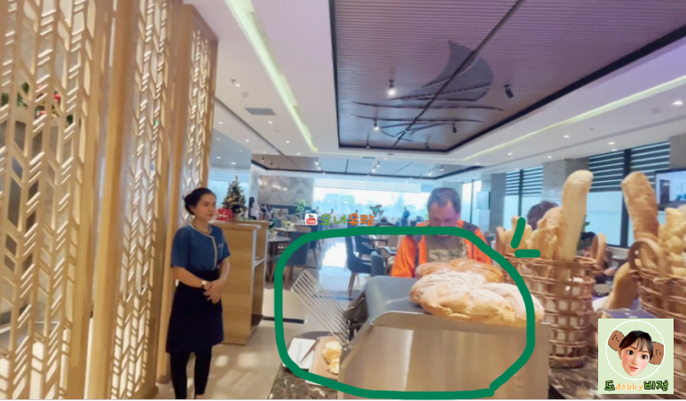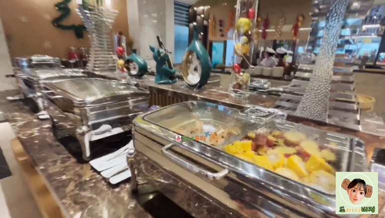 메인바 외에도 쌀국수, 계란후라이, 오믈렛을 만들어주는 곳, 빵과 과일이 있는 곳이 있습니다:)