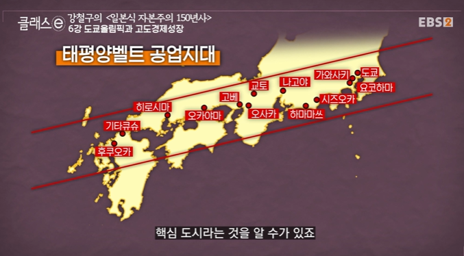 - 일본의 태평양벨트 공업지대의 위치를 확인 / 해안가 중심