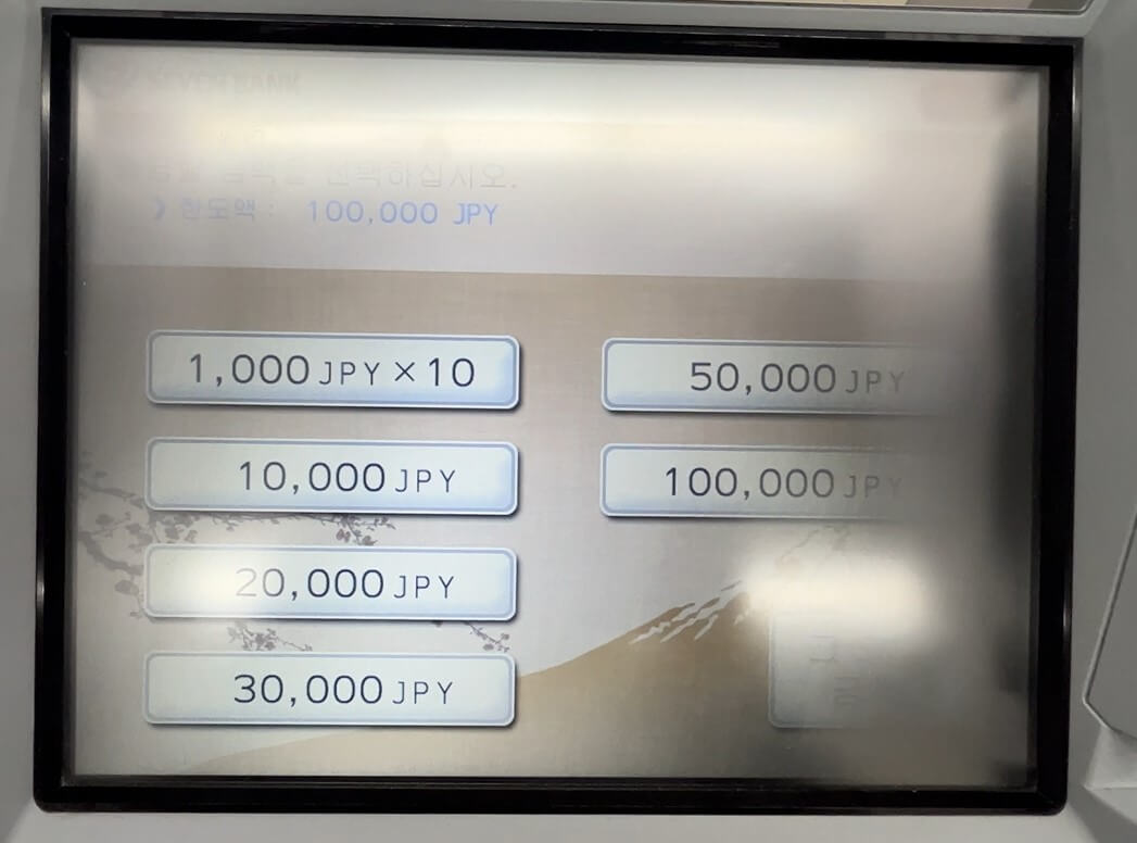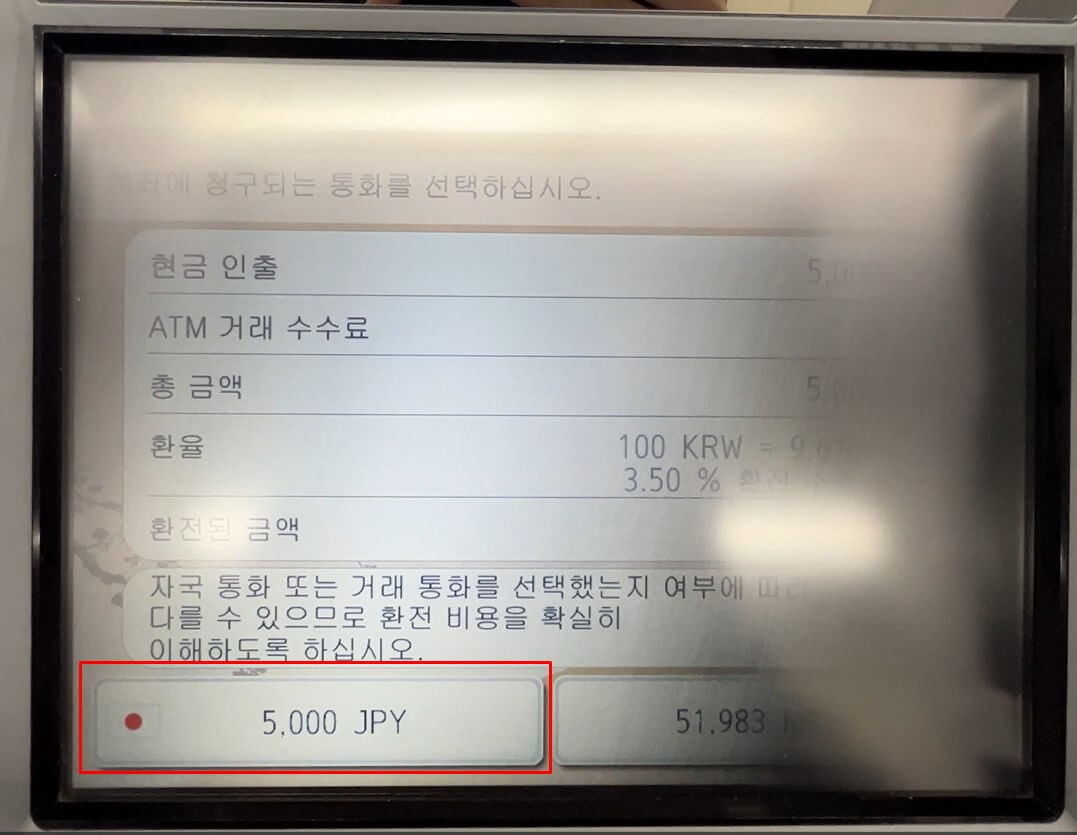 출금의 형태에서 꼭 한국돈이 아닌, 일본돈을 선택해야 합니다!