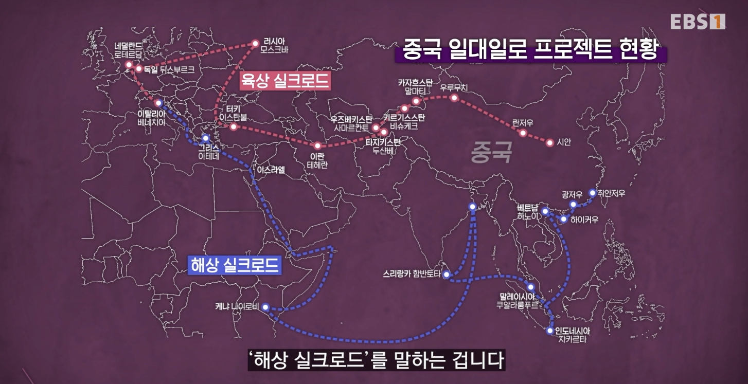 - 육상, 해상 싱크로드 국가에 인프라 투자, 경제 성장 동력을 얻고자 함(150개 국가 참여 중)