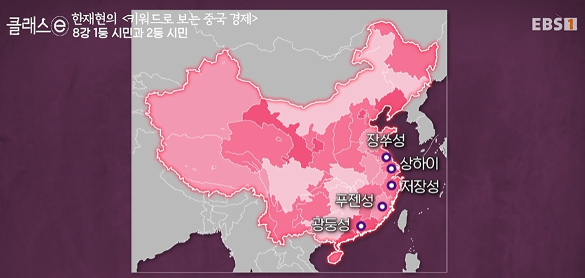 - 선부론의 개발 중점 부문: 중국의 동남부 연해 지역, 제조업과 무역, 도시