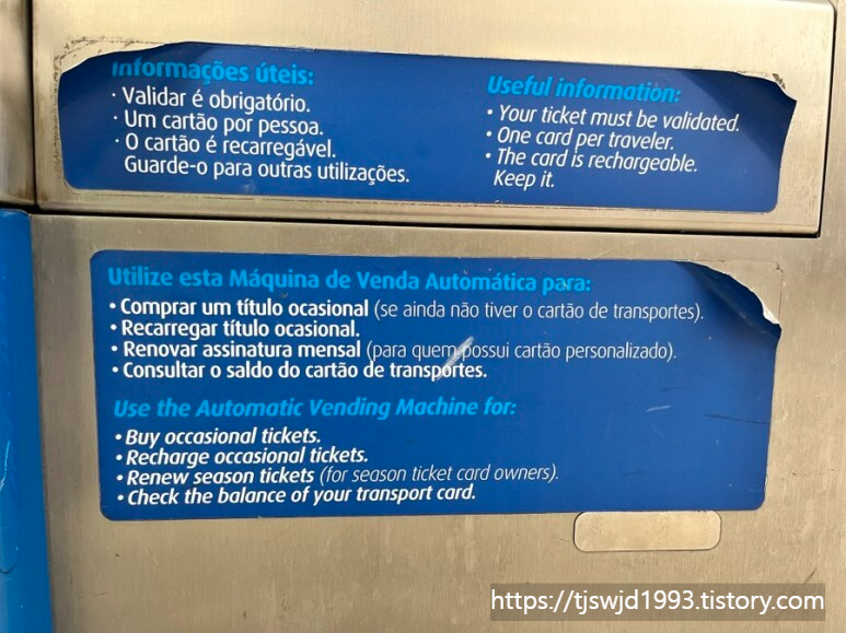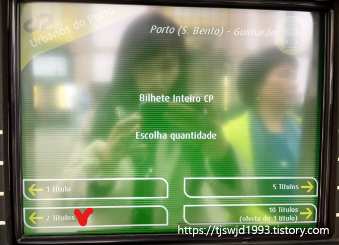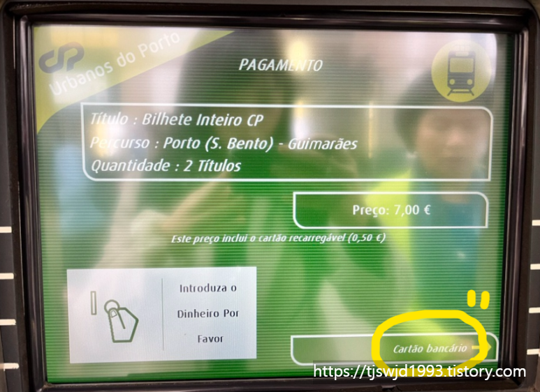 (당연히 기마랑이스역에서 상벤투 기차역으로 돌아오실 때에도 노란색 기계에 터치**)
