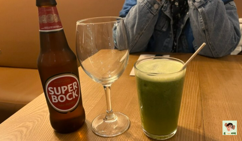 맥주 한 잔과 유기농 쥬스 한 잔을 먼저 시켜서