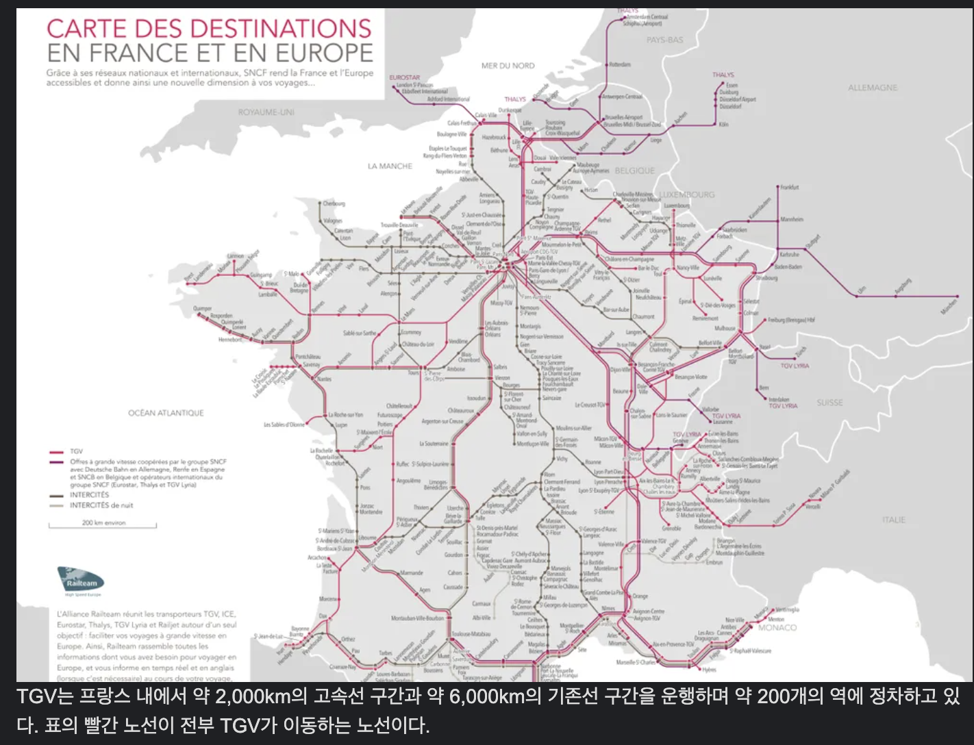 철도 시각표가 장거리 열차인 TGV나 앵테르시테와의 접속을 중심으로 짜여 있다.