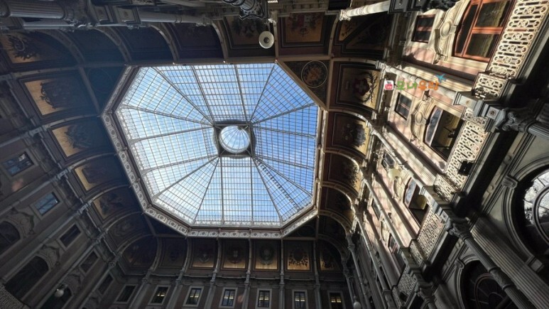 유리 돔 천장과 모자이크 타일 바닥으로 장식된 곳입니다.