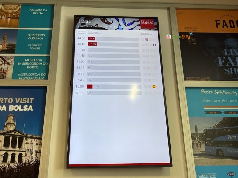 정면에는 볼사궁전 가이드투어 시간대 안내도 있습니다!