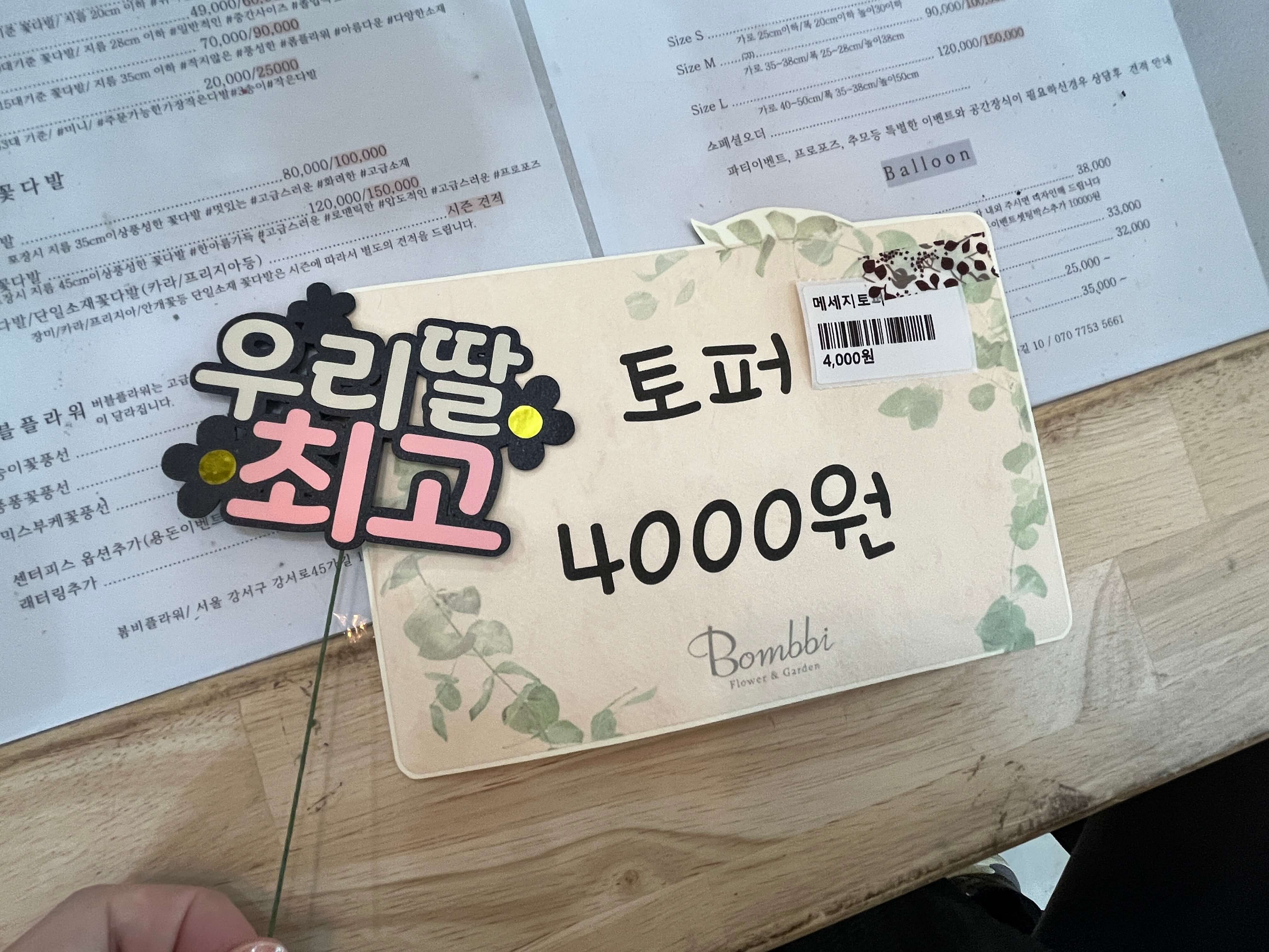 좋았던 부분이 꽃 사이즈별로 정확하게 금액대가 안내되어 있어서ㅎㅎ