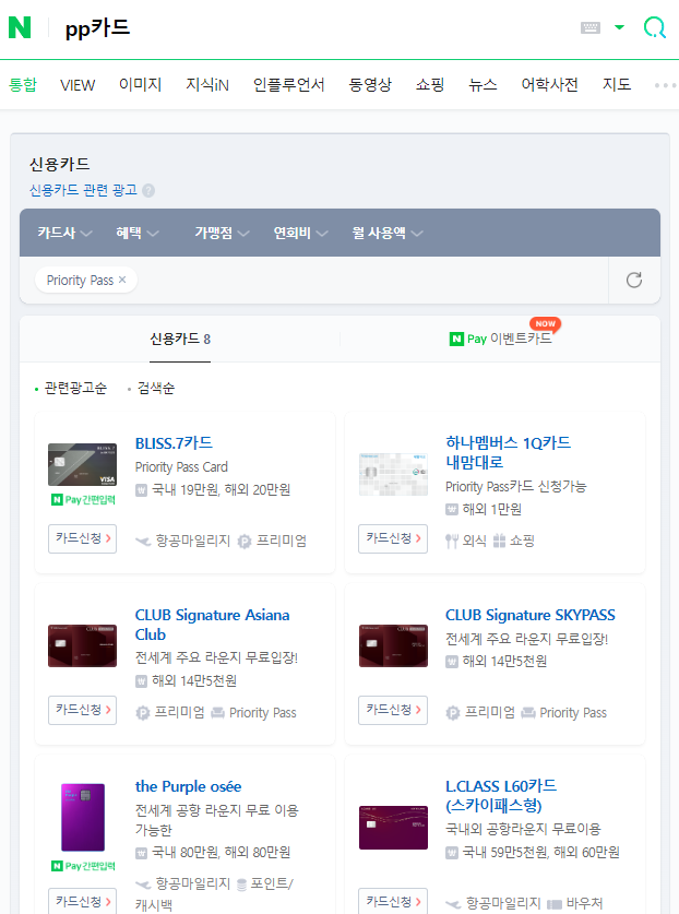 다양한 pp카드가 나오는데, 본인이 감당할 수 있는 회비와 여행 횟수에 따라 선택하면 됩니다.